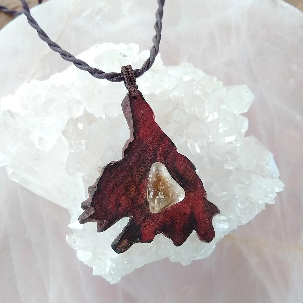 Maravilhoso Colar de Madeira Nobre com Cristal de Quartzo - Pedra Natural.
