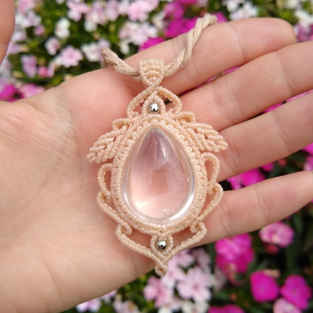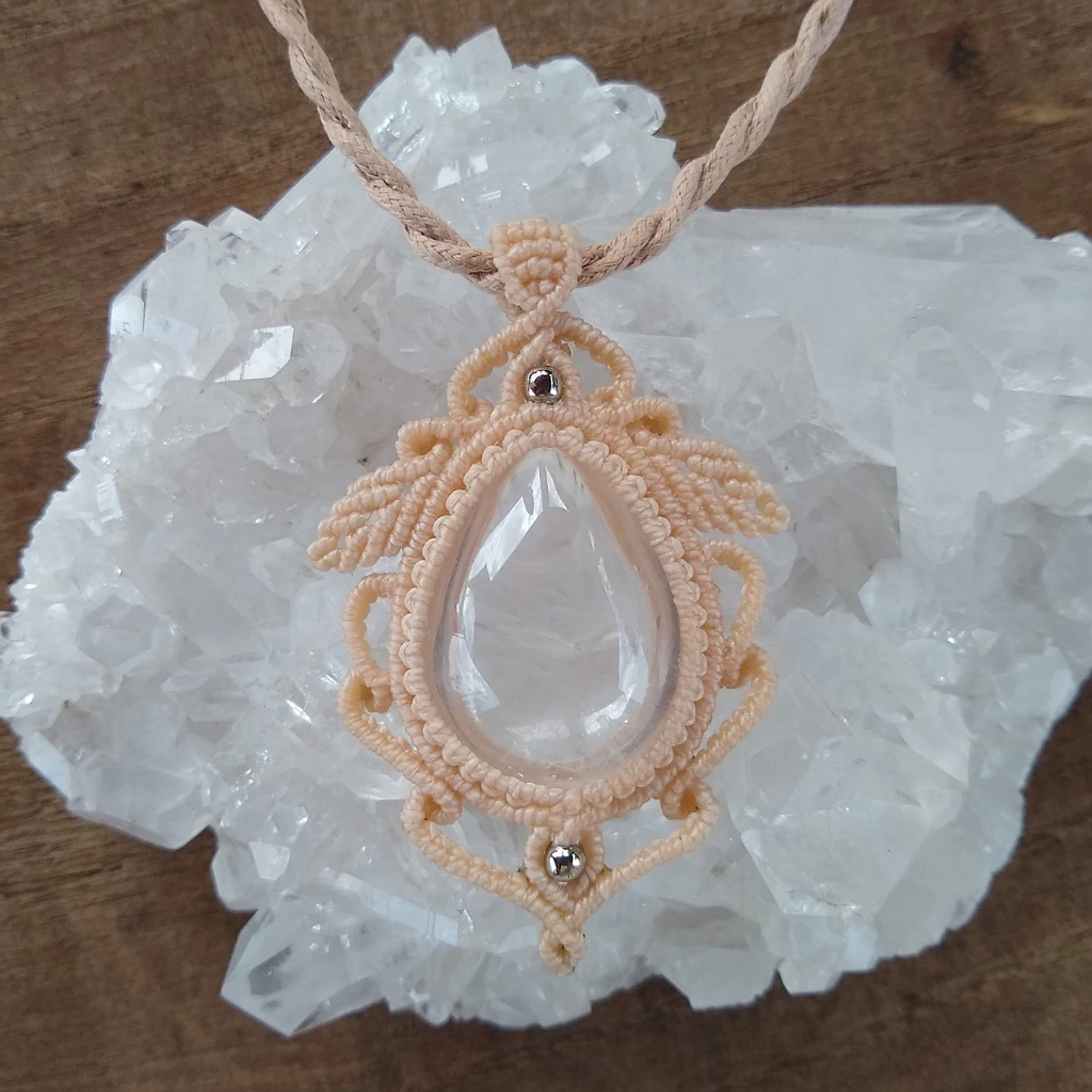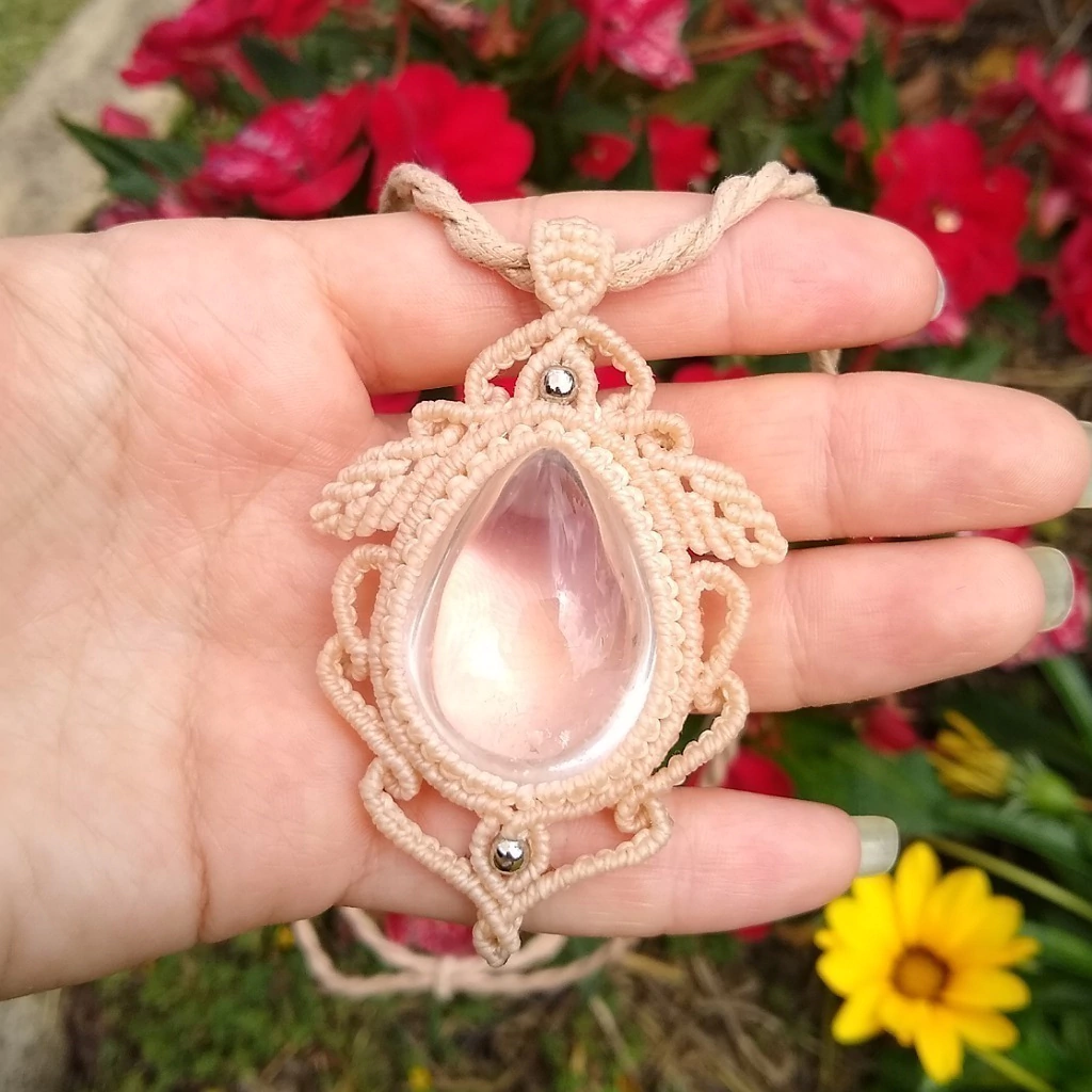 Lindo Colar em Macramê com Cristal de Quartzo - Pedra Natural.