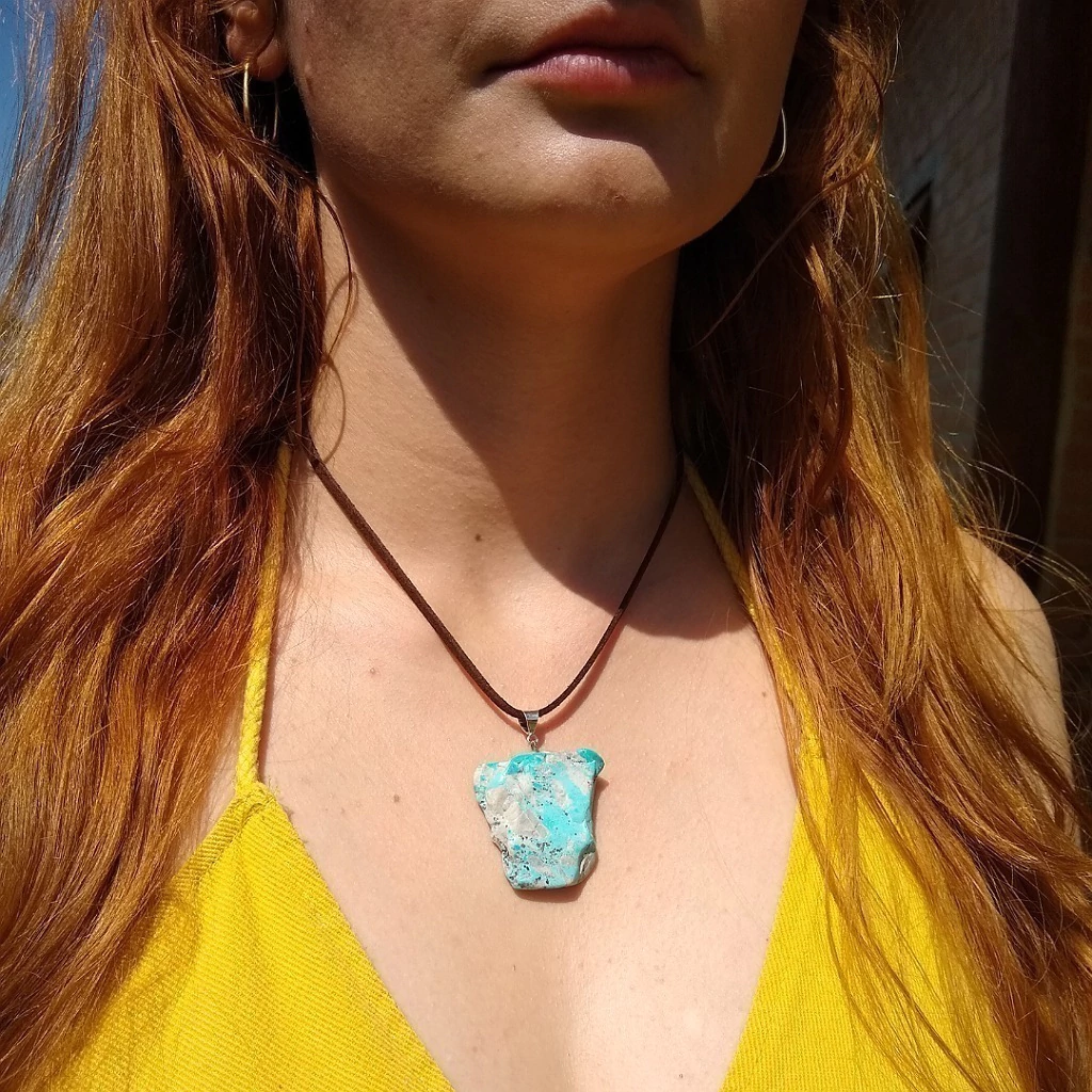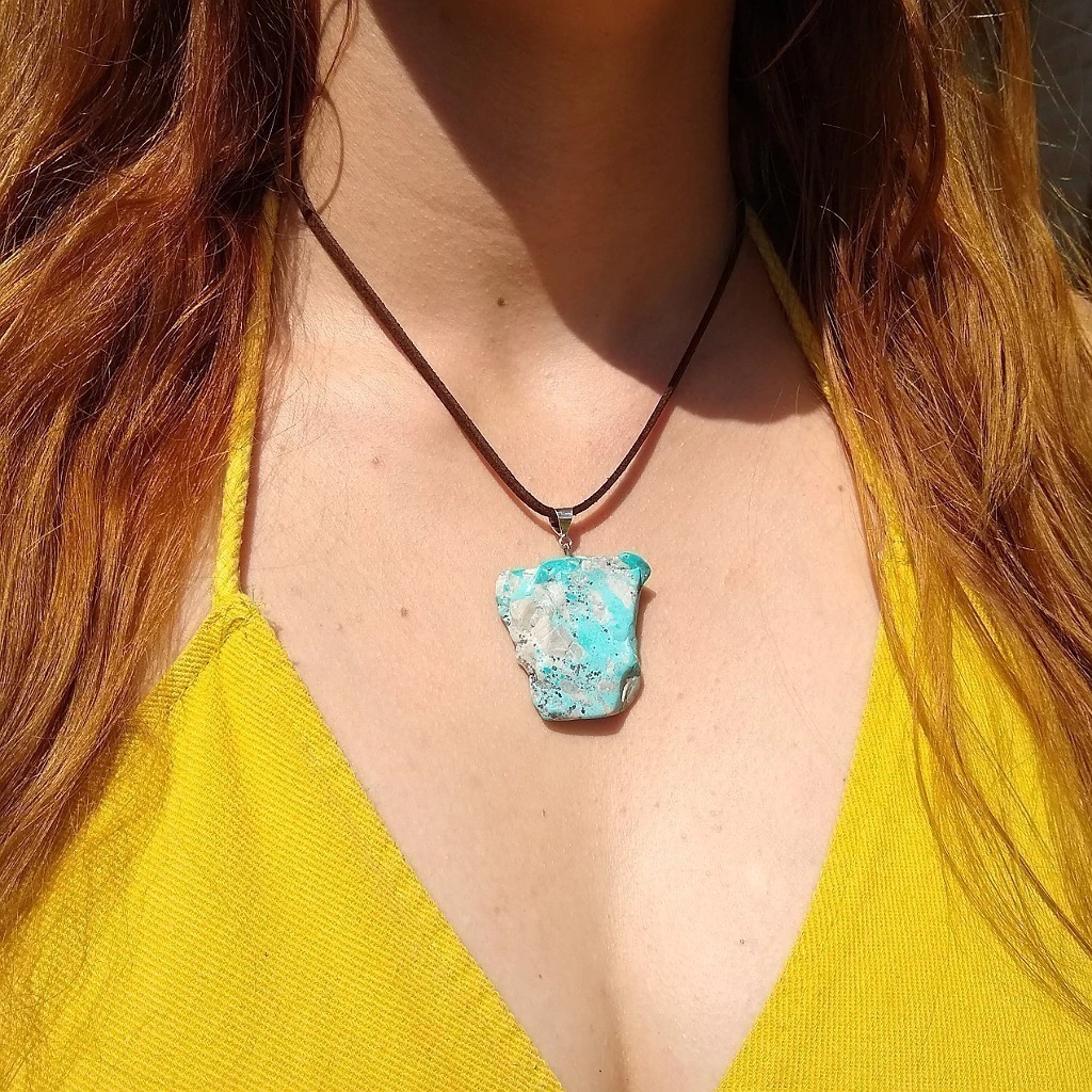 Lindo Colar de Turquesa com Fecho (Pino e passador de cordão, anexo à pedra) de Prata 925 – Pedra Natural.