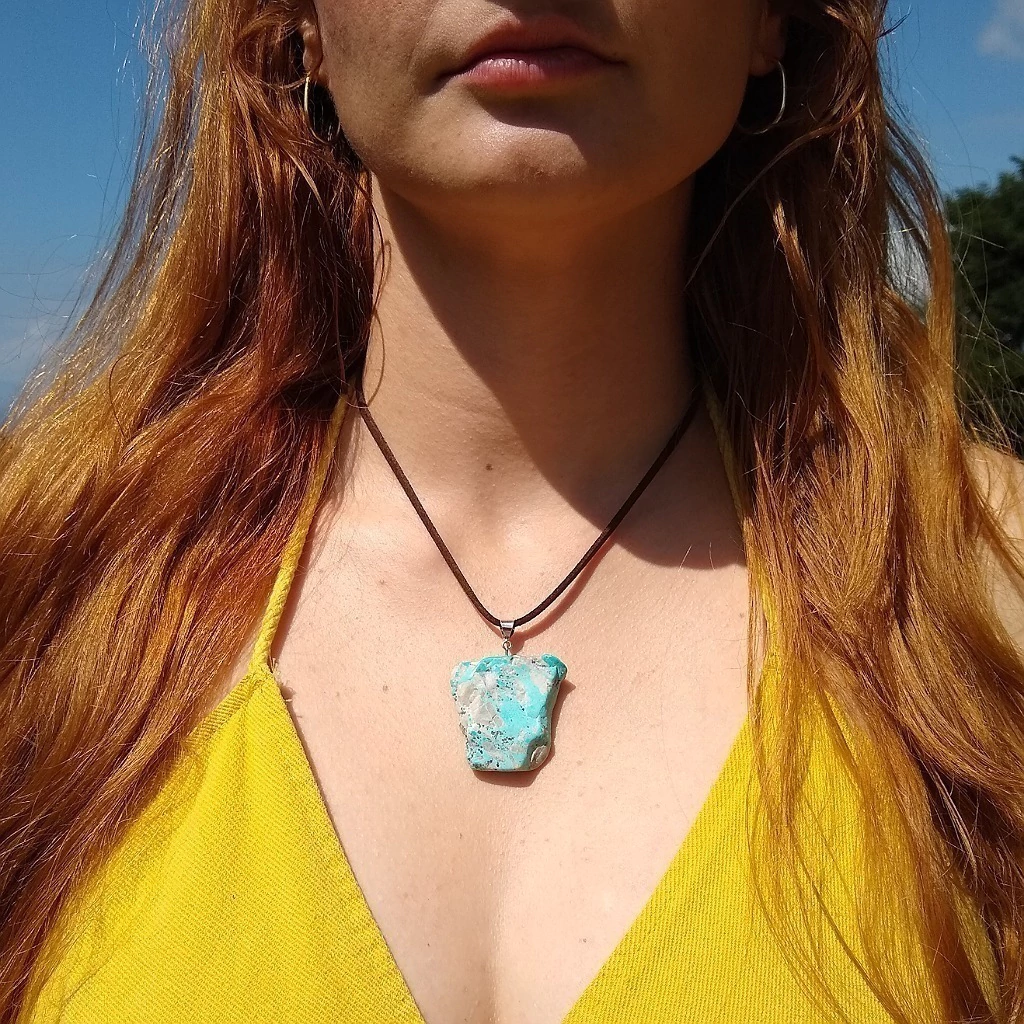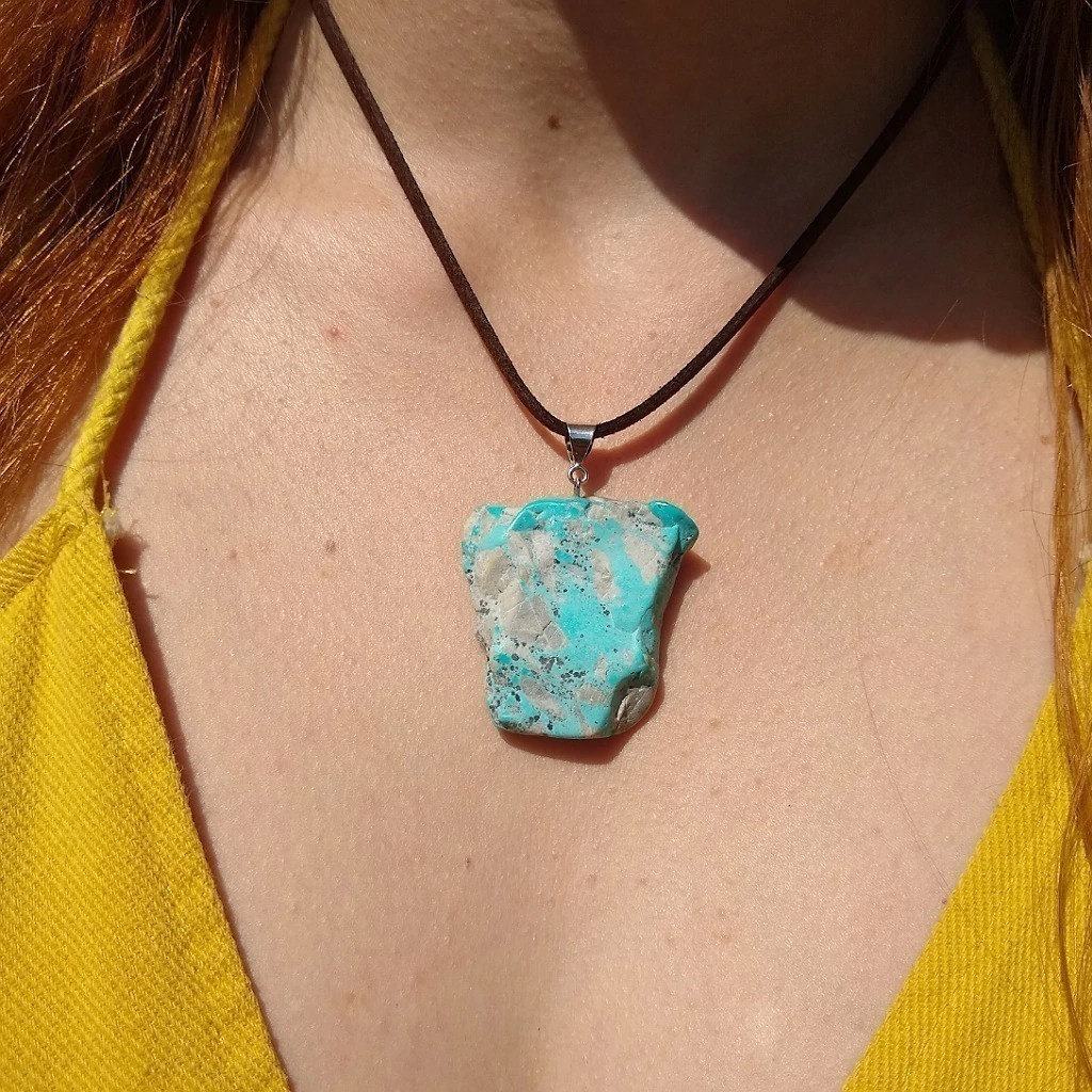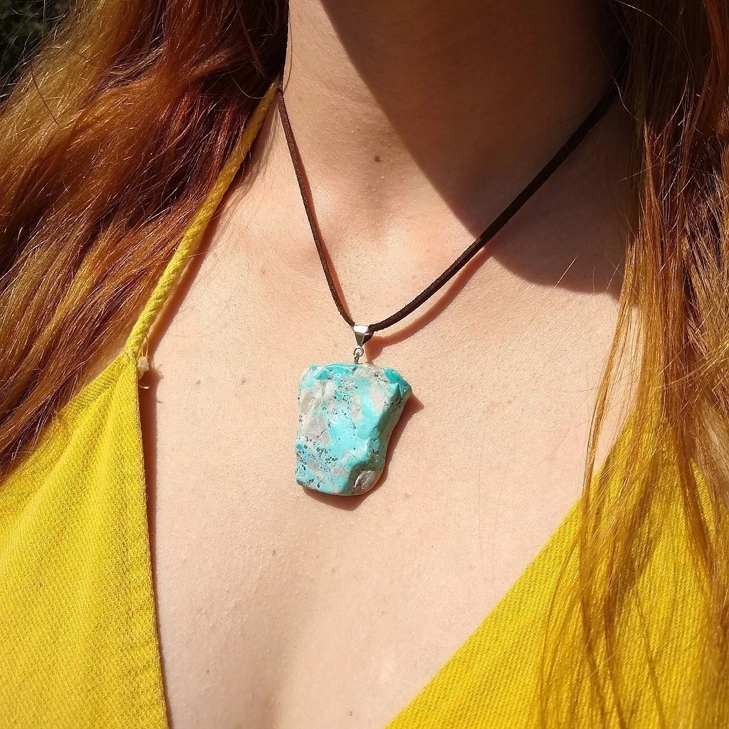 Do ponto de vista físico, a turquesa é uma pedra excelente para a exaustão, a depressão ou ataques de pânico. Uma das suas funções é proteger contra influências externas ou poluentes na atmosfera.