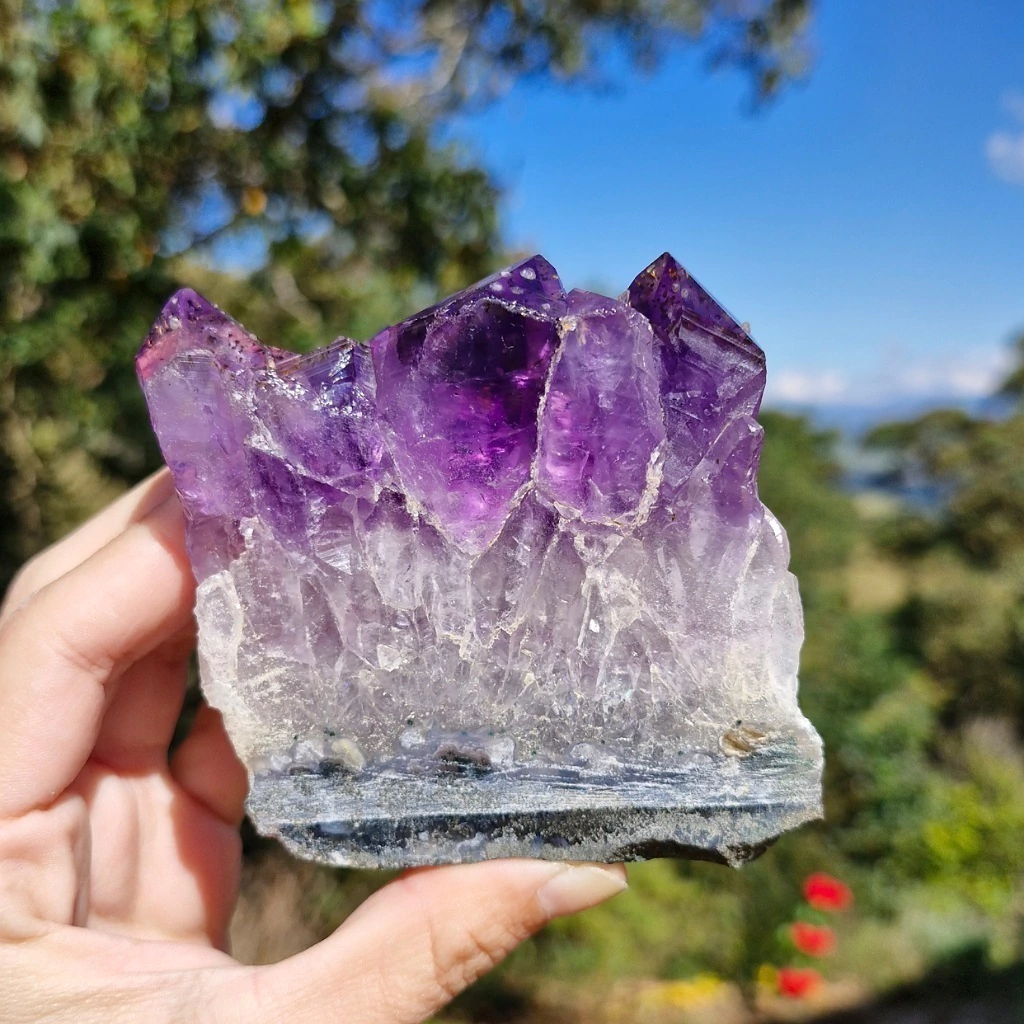 A Ametista é uma pedra extremamente poderosa e protetora, com uma vibração altamente espiritual. Ela nos protege contra ataques psíquicos, transmutando a energia em amor. Calmante natural, a ametista bloqueia o estresse geopático e as energias negativas do ambiente. A sua serenidade favorece a meditação e estados de consciência mais elevados. Essa pedra tem um forte poder de cura e purificação, além de aguçar a percepção espiritual. Por tradição era usada para prevenir a embriaguez e devolver a sensatez a pessoas superindulgentes e entregues a paixões físicas, favorecendo a sobriedade. Ela combate vícios de todos os tipos. Usada num nível mais elevado, a ametista abre a percepção para outra realidade.