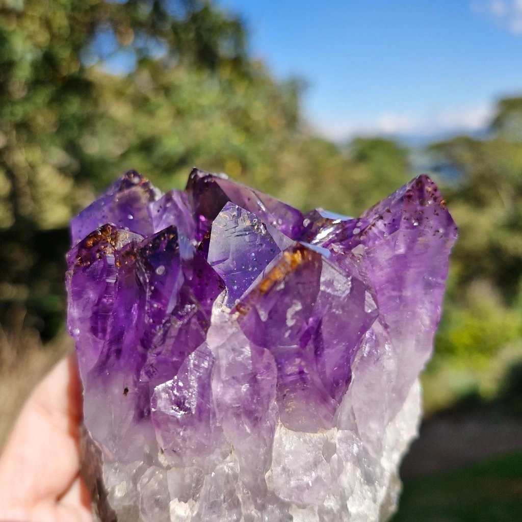 A ametista é uma das pedras mais espirituais que se conhece: promove o amor pelo divino, faz revelações acerca da sua natureza verdadeira e estimula o altruísmo e a sabedoria espiritual. Ela abre a intuição e intensifica os dons psíquicos. Trata-se de uma excelente pedra para a meditação e a escriação, e pode ser colocada sobre o terceiro olho para estimulá-lo. Durma com uma ametista se quiser ter experiências fora do corpo e sonhos intuitivos. Essa pedra transmuta energias “inferiores”, levando-as a atingir as frequências mais elevadas dos reinos espiritual e etérico.
