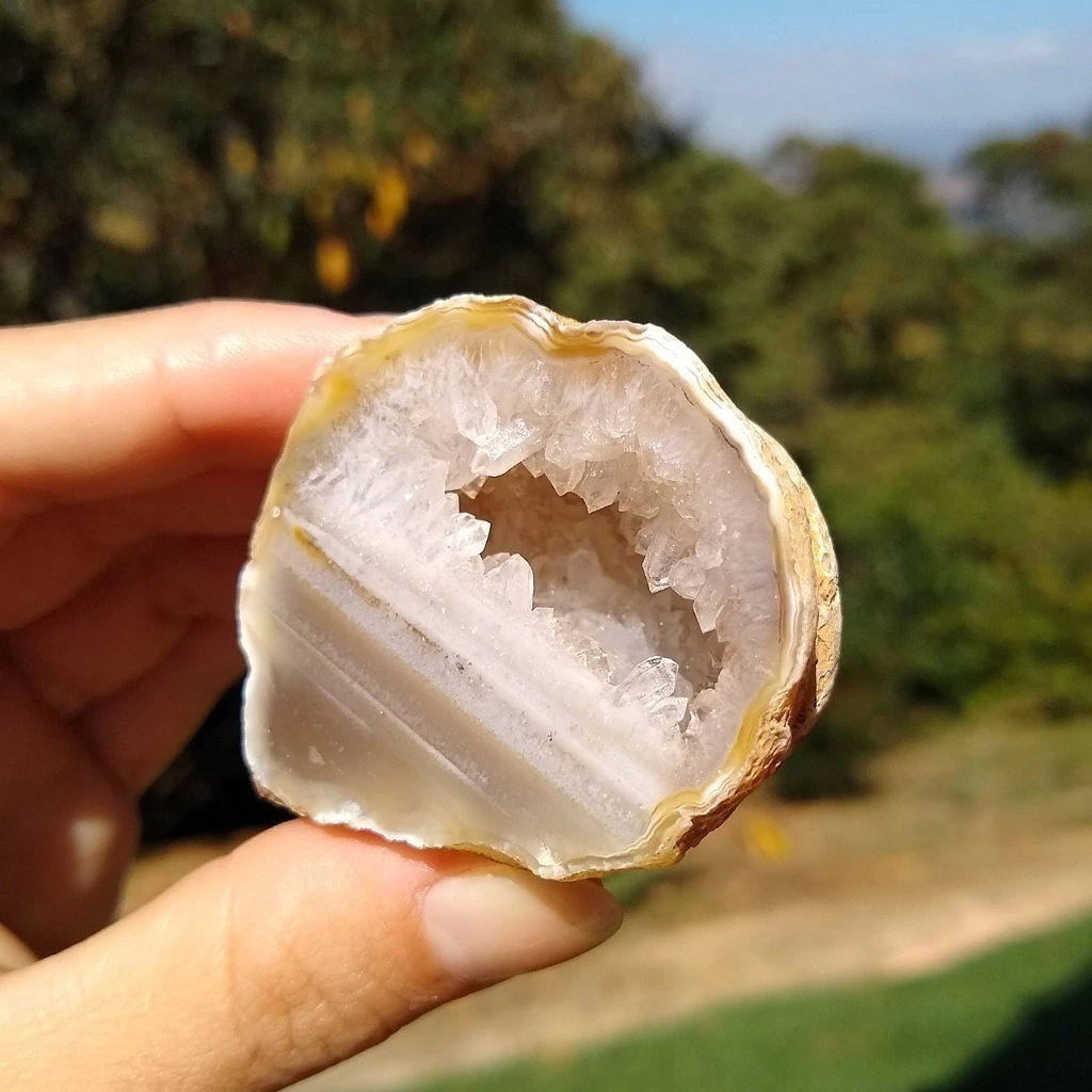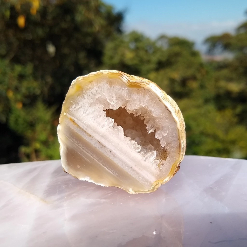 Lindo Geodo de Ágata com Cristal de Quartzo- Pedra Natural.