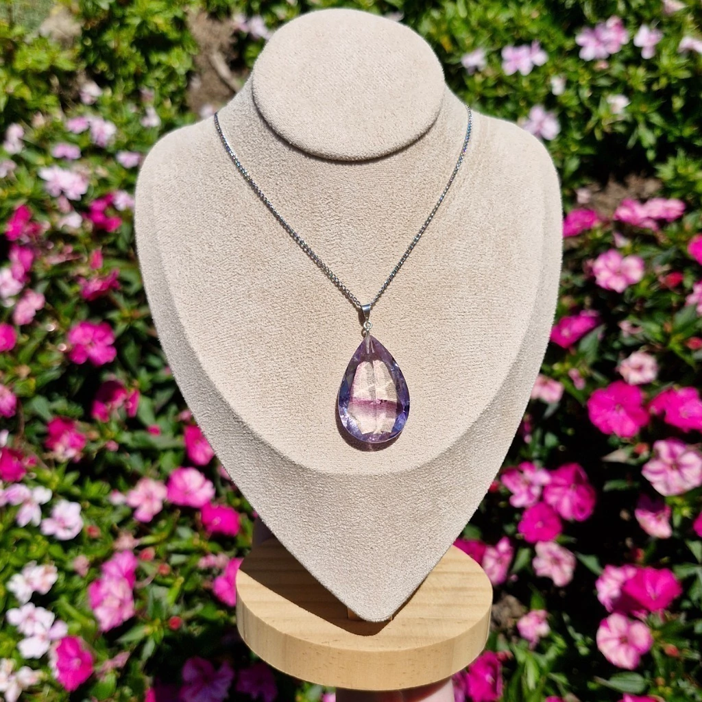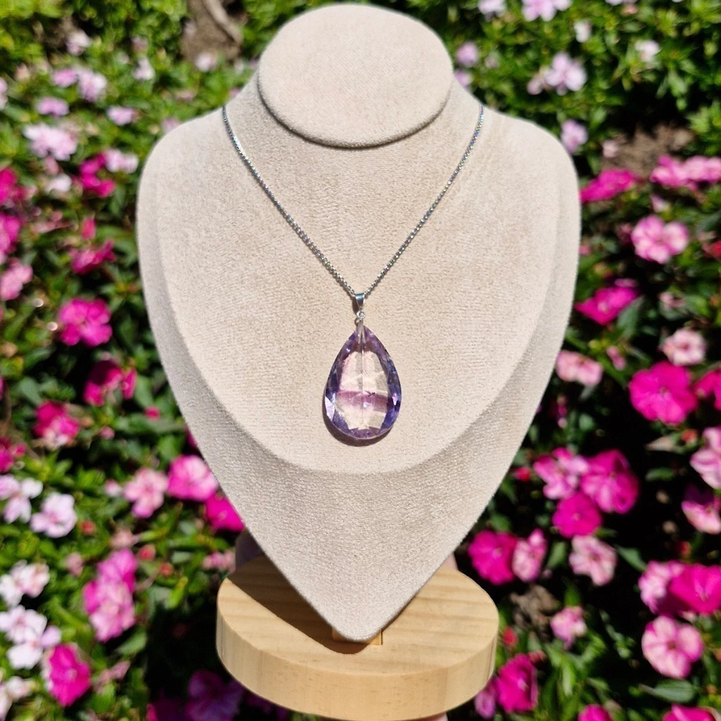 Lindo Pingente de Ametista Facetada com Fecho de Prata 925 + Corrente de Aço Inoxidável – Pedra Natural.