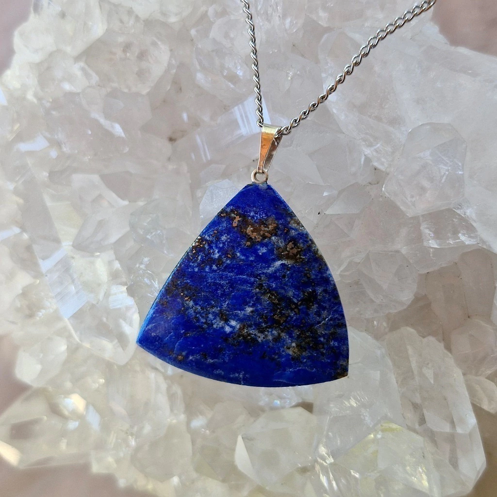 O Lápis-Lazúli abre o terceiro olho e equilibra o chakra da garganta. Ele estimula a iluminação e intensifica o trabalho com sonhos e as capacidades psíquicas, facilitando a viagem astral e aumentando o poder pessoal e espiritual. Essa pedra libera rapidamente o estresse, trazendo uma paz profunda. Ela possui uma enorme serenidade e é a chave para a realização espiritual.
