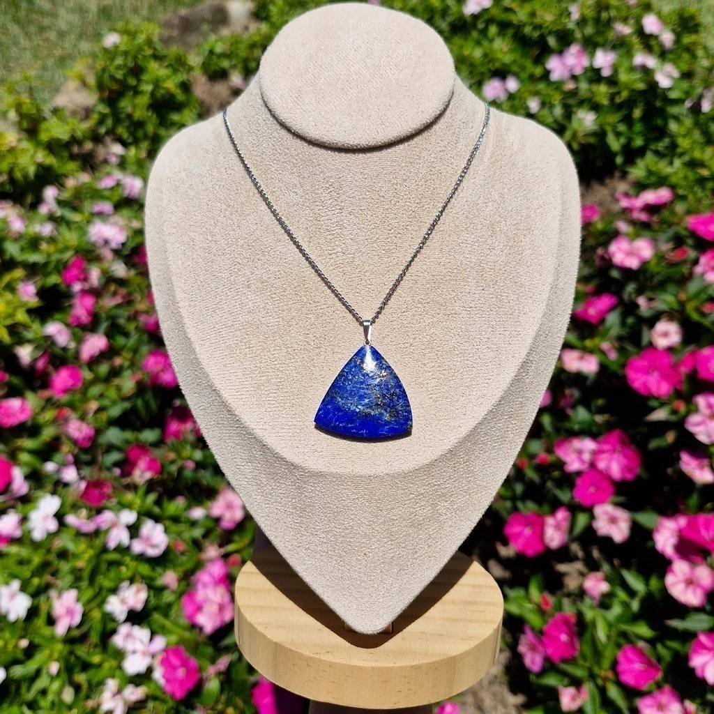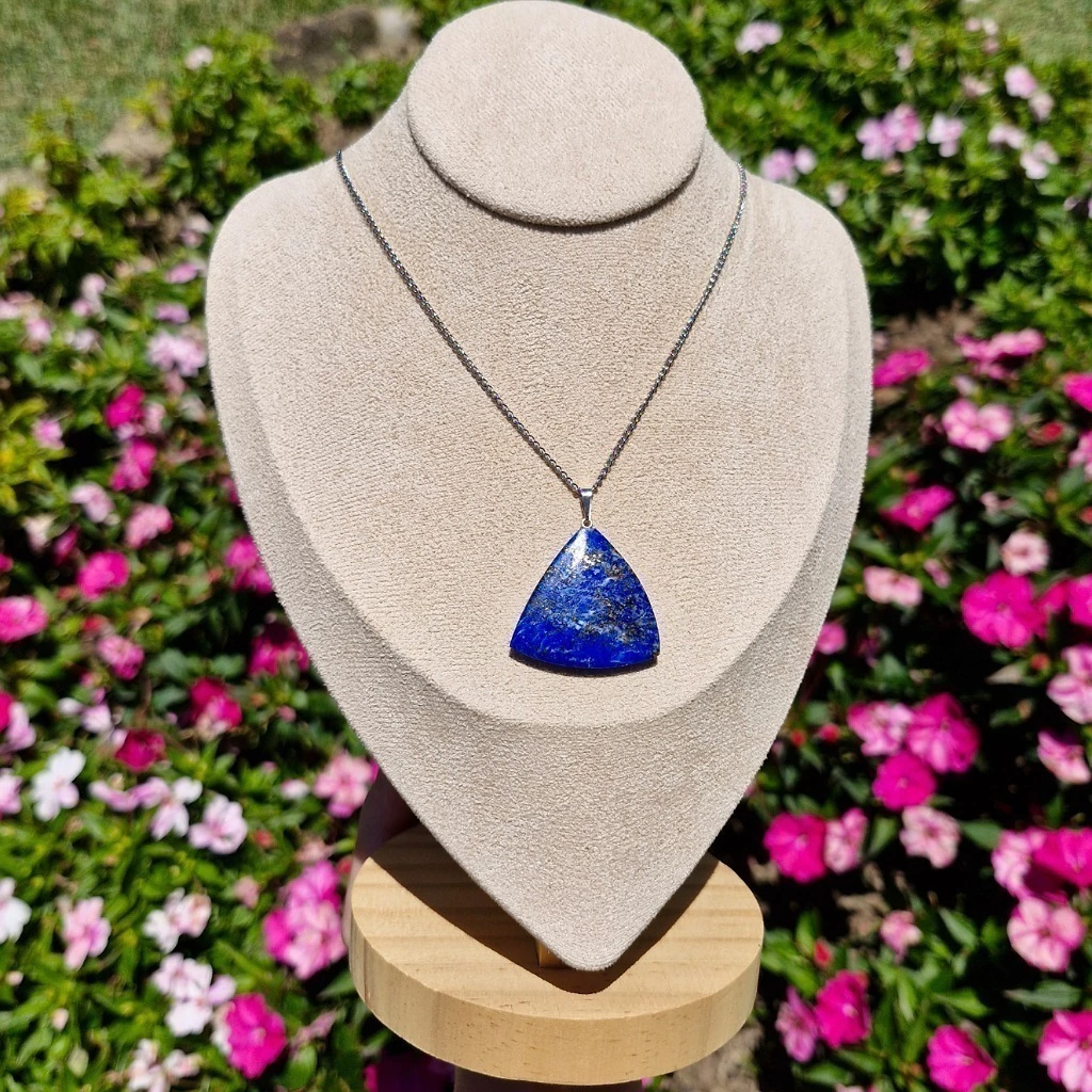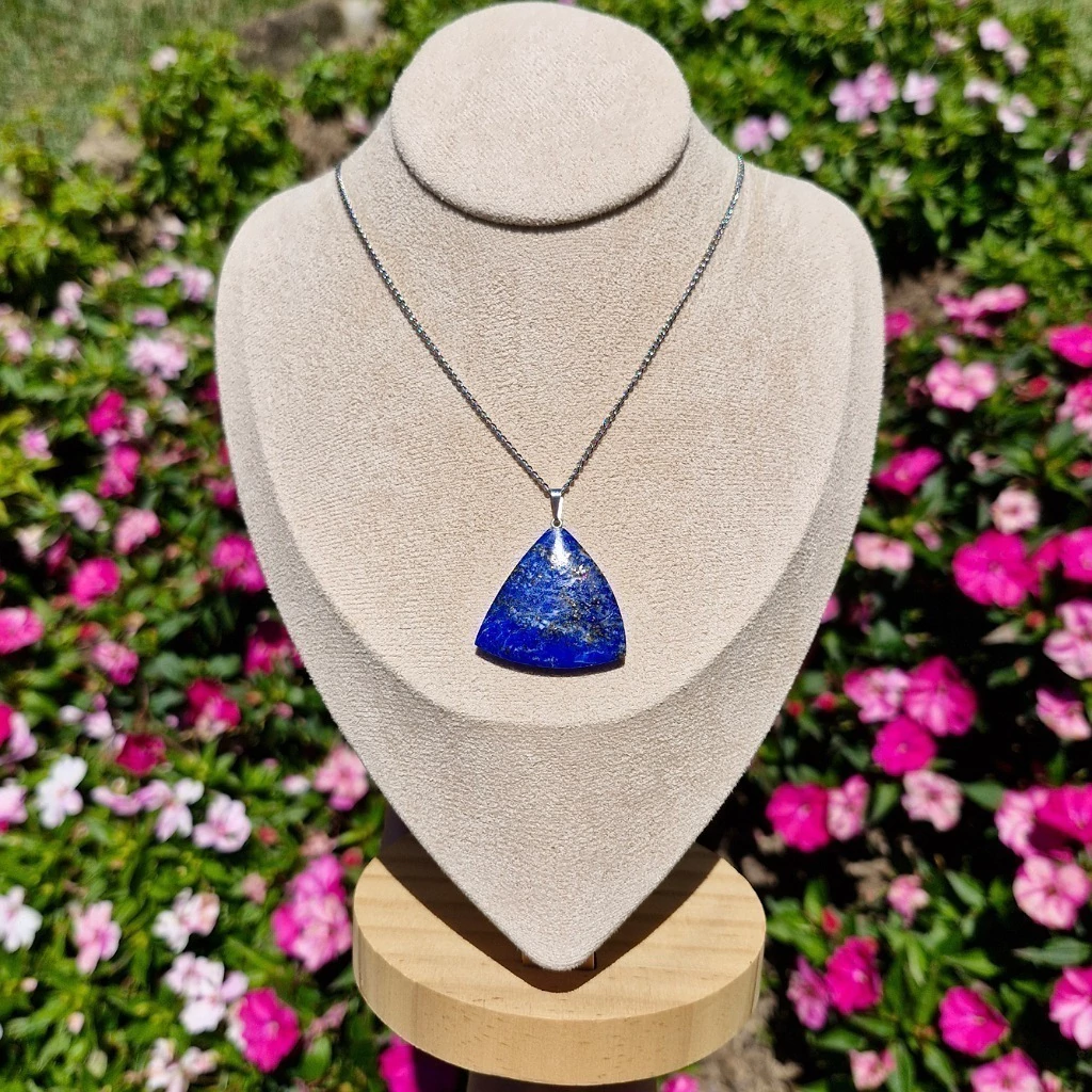 Lindo Pingente em Prata 925 de Lápis-Lazuli + Corrente de Aço Inoxidável – Pedra Natural.