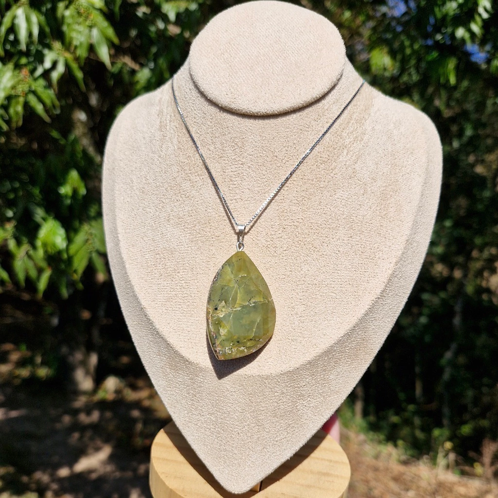 Maravilhoso Pingente em Prata 925 de Opala Verde + Corrente de Aço Inoxidável – Pedra Natural.