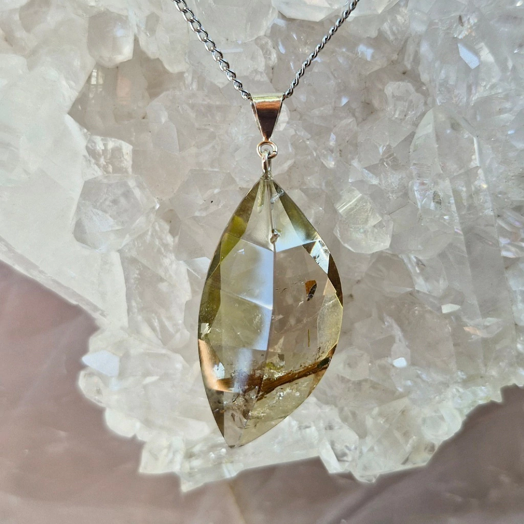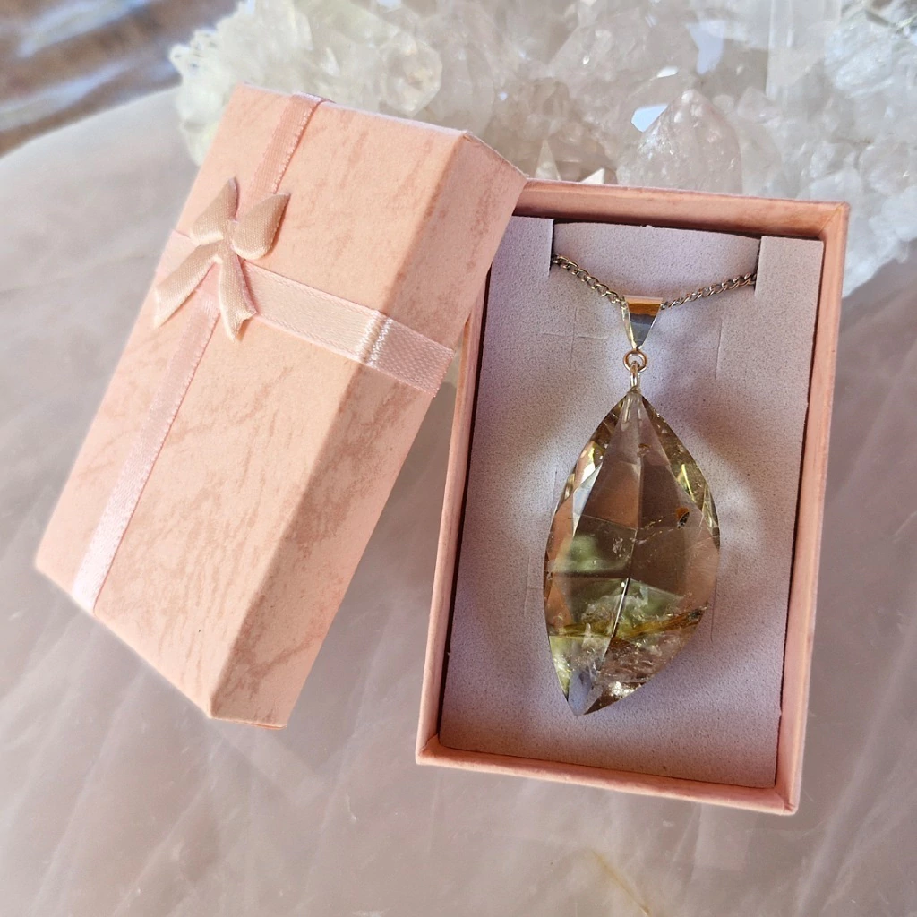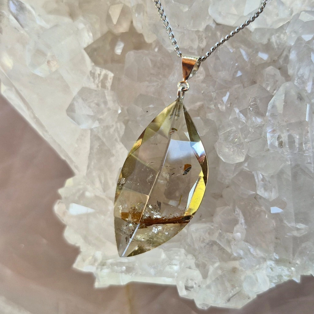 Lindo Pingente de Quartzo Fumê Rutilado Facetado com Fecho de Prata 925 + Corrente de Aço Inoxidável – Pedra Natural.