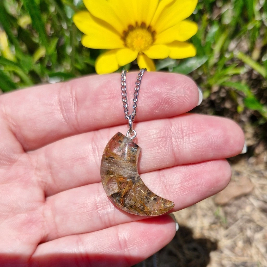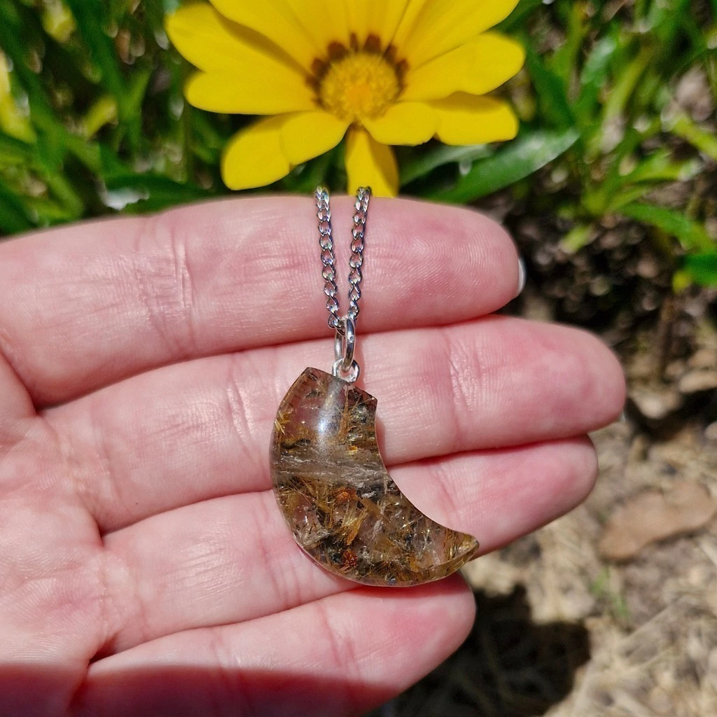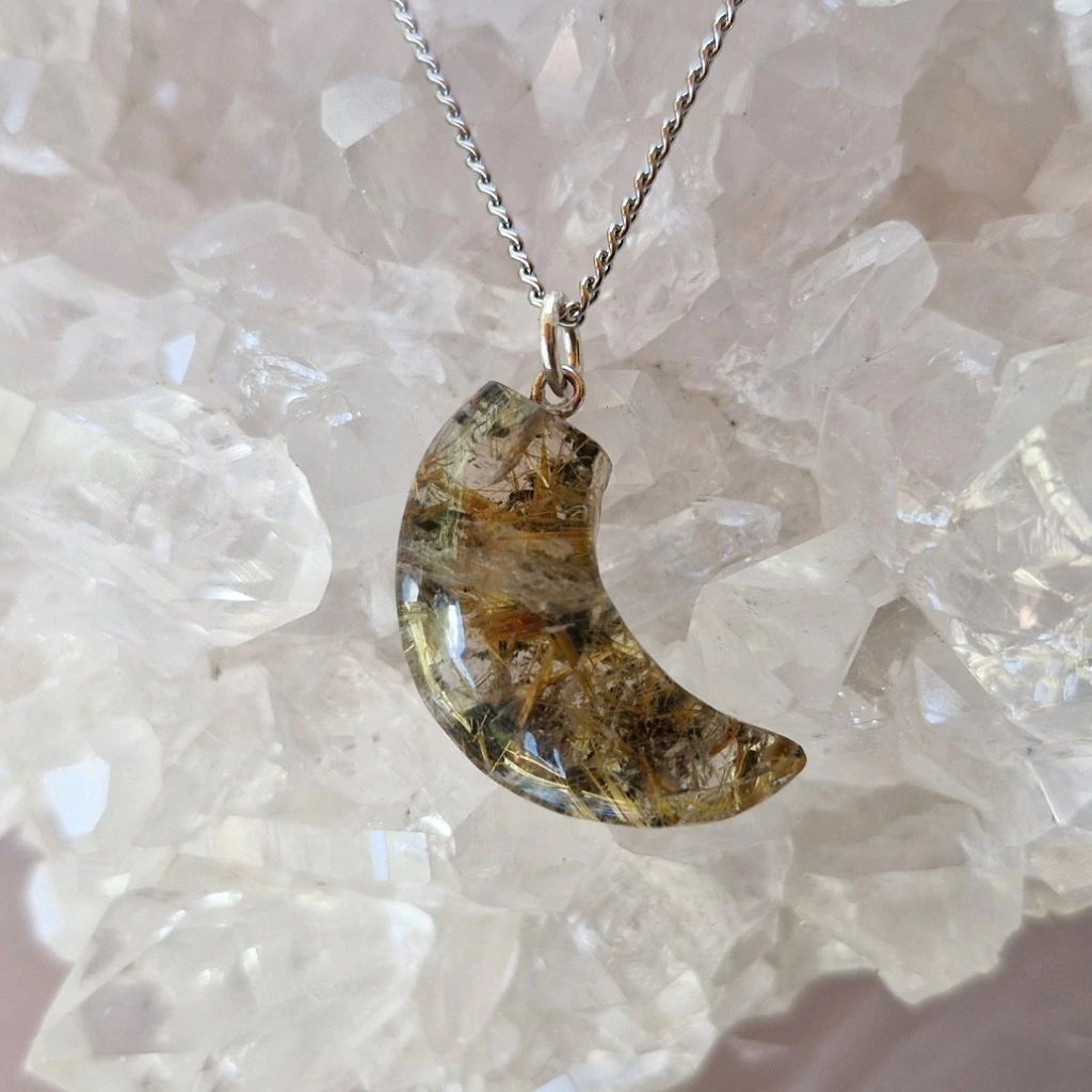 Lindo Pingente de Quartzo Rutilado Facetado com Fecho de Prata 925 + Corrente de Aço Inoxidável – Pedra Natural.
