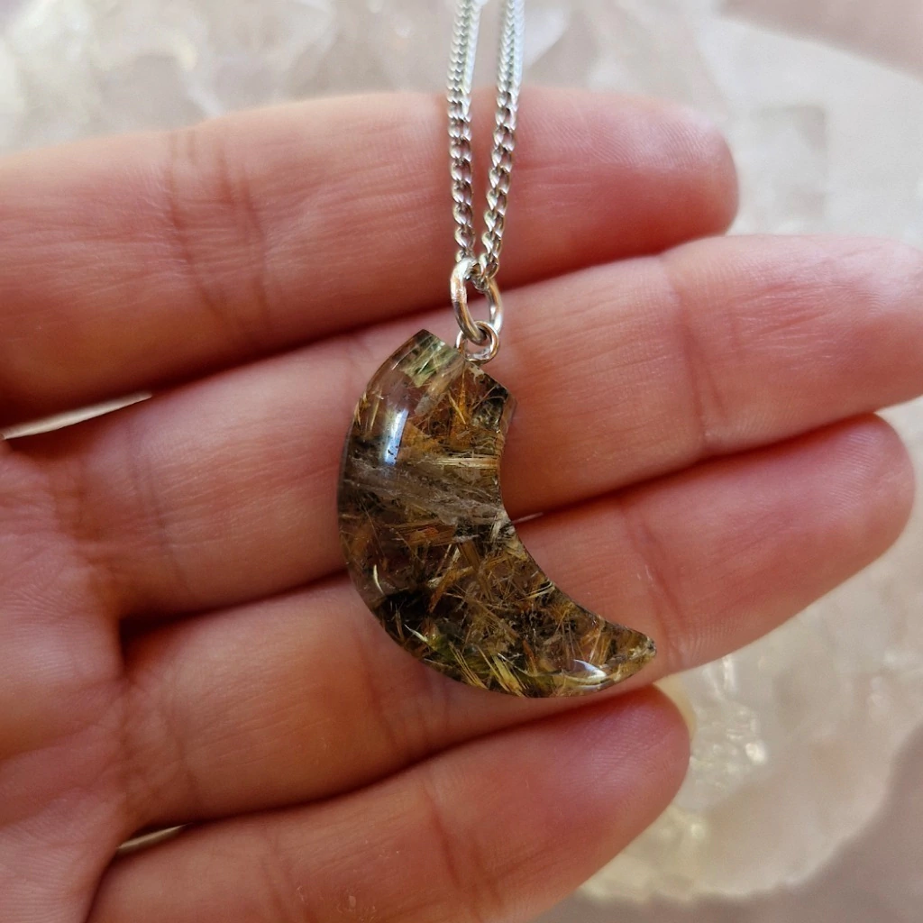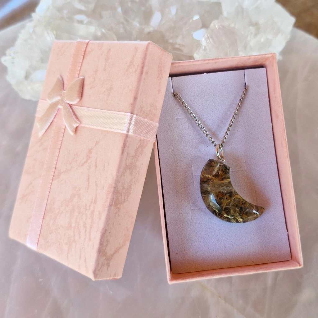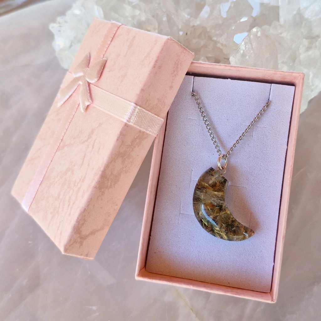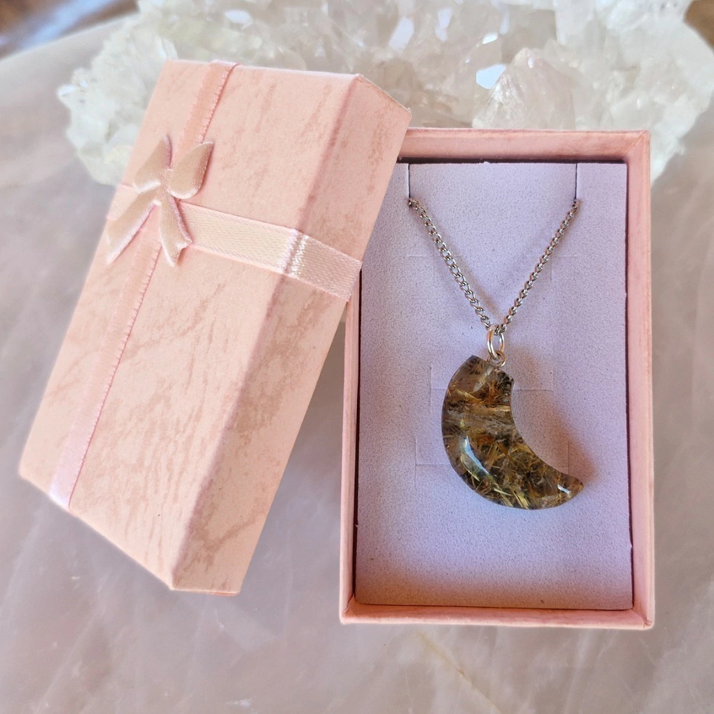 Lindo Pingente de Quartzo Rutilado Facetado com Fecho de Prata 925 + Corrente de Aço Inoxidável – Pedra Natural.